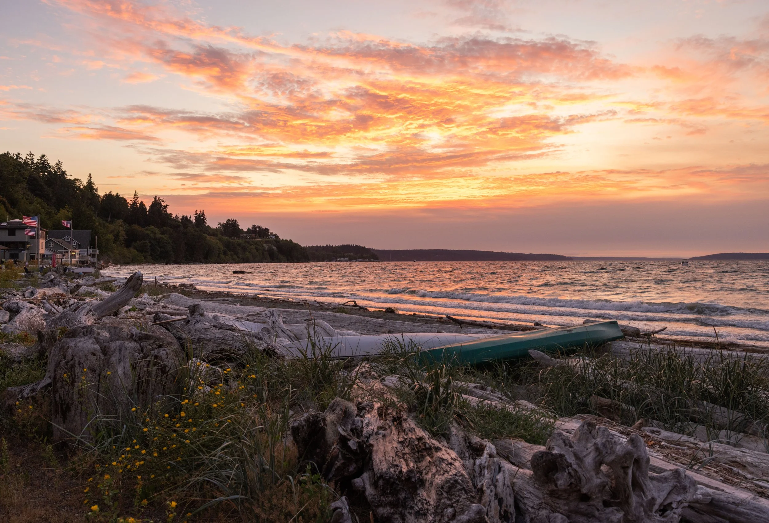 The inspiration for the Whidbey Island cabin was drawn from the coastal colors of white washed driftwood and the charred firewood from the beach. The contrast of the dark exterior with the whitewashed interiors as the views toward the water shift throughout the day creates a serene island retreat from day until night.Architectural Team: Kristen Becker, Matthew Boselli, David Miller
